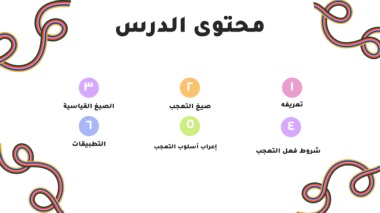 محتوى الدرس ٣ ٢ ١ الصيغ القياسية صيغ التعجب تعريفه ٦ ٥ ٤ التطبيقات إعراب أسلوب التعجب شروط فعل التعجب 98 765 0