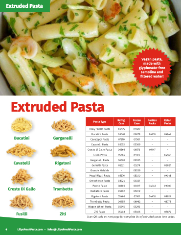 Scan QR code on next page for complete list of extruded pasta item codes.