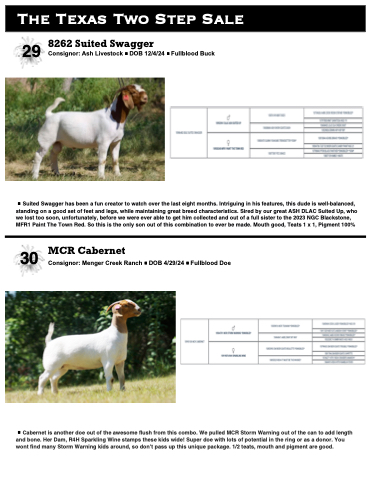 Suited Swagger has been a fun creator to watch over the last eight months. Intriguing in his features, this dude is well-balanced, standing on a good set of feet and legs, while maintaining great breed characteristics. Sired by our great ASH DLAC Suited Up, who we lost too soon, unfortunately, before we were ever able to get him collected and out of a full sister to the 2023 NGC Blackstone, MFR1 Paint The Town Red. So this is the only son out of this combination to ever be made. Mouth good, Teats 1 x 1, Pigment 100%