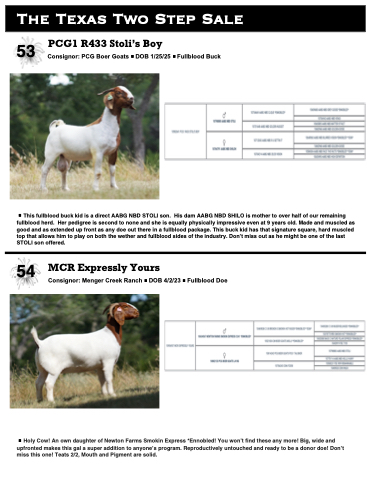 Consignor: PCG Boer Goats DOB 1/25/25 Fullblood Buck