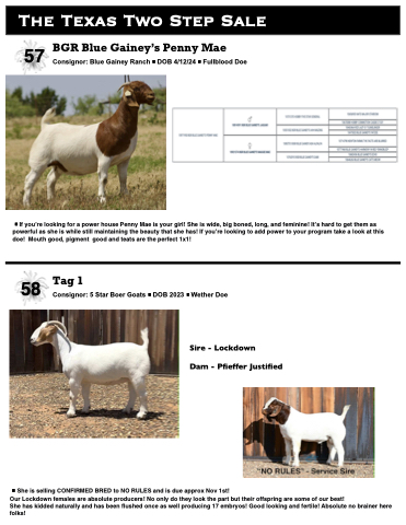 Consignor: 5 Star Boer Goats DOB 2023 Wether Doe