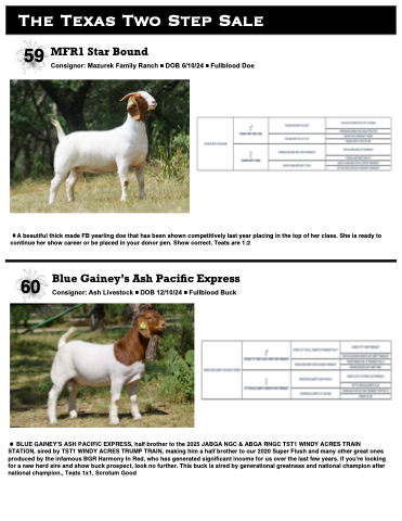 BLUE GAINEY’S ASH PACIFIC EXPRESS, half brother to the 2025 JABGA NGC & ABGA RNGC TST1 WINDY ACRES TRAIN STATION, sired by TST1 WINDY ACRES TRUMP TRAIN, making him a half brother to our 2020 Super Flush and many other great ones produced by the infamous BGR Harmony In Red, who has generated significant income for us over the last few years. If you're looking for a new herd sire and show buck prospect, look no further. This buck is sired by generational greatness and national champion after national champion., Teats 1x1, Scrotum Good