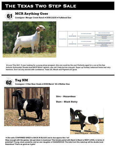Consignor: 5 Star Boer Goats DOB March ’24 Wether Doe