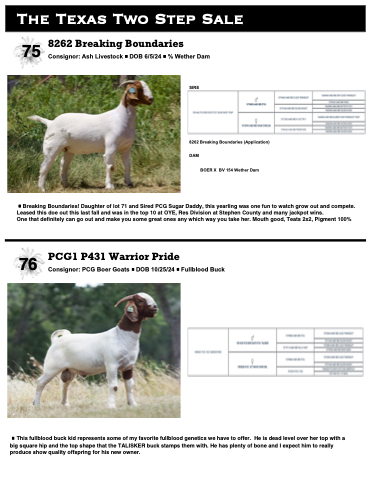 Consignor: PCG Boer Goats DOB 10/25/24 Fullblood Buck