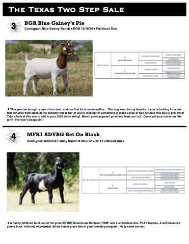 This year we brought some of our best, and our first lot is no exception... She may even be my favorite. If you’re looking for a doe that can play both sides of the industry this is her! If you’re looking for something to make a play at San Antonio this doe is THE style! Take a look at this doe to add to your 2026 show string! Mouth good, pigment good and teats are 1x2. Come get your hands on this girl!! She won't disappoint!!