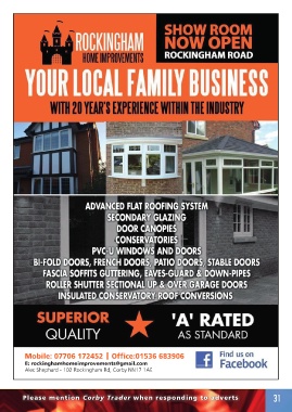 Mobile: 07706 172452 Office:01536 683906 E: rockinghamhomeimprovements@gmail.com Alec Shephard - 102 Rockingham Rd, Corby NN17 1AE Please mention Corby Trader when responding to adverts 31