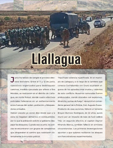 Jtoral boliviano. Entre el 11 y 12 de junio, pio de Llallagua y a lo largo de la carretera que