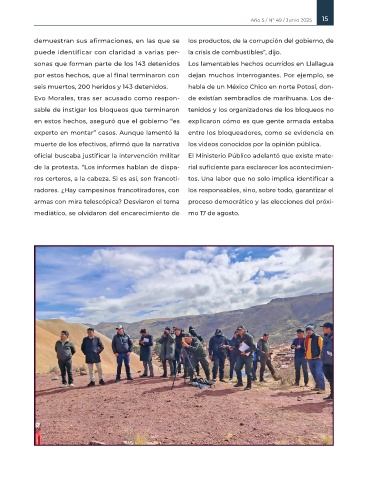 Evo Morales, tras ser acusado como respon- de existían sembradíos de marihuana. Los de-