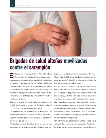 cremento de los casos. “En el tema de sarampión, ustedes saben la