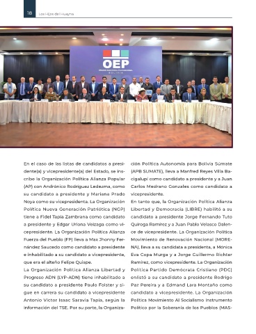 En el caso de las listas de candidatos a presi- ción Política Autonomía para Bolivia Súmate