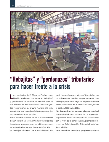 La “Rebajita Tributaria” de la alcaldía de El Alto Este beneficio, permite a propietarios de vi-