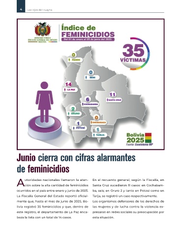 ocurridos en el país entre enero y junio de 2025. ba, seis; en Oruro 2 y tanto en Potosí como en