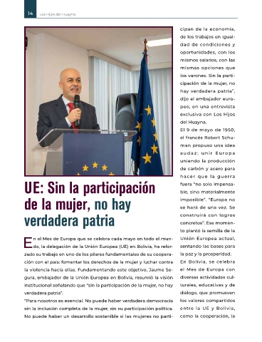 sin la inclusión completa de la mujer, sin su participación política. entre la UE y Bolivia,