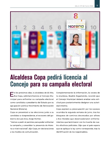 EEva Copa, solicitará licencia al Concejo Mu- la alcaldesa, Beatriz Zegarrundo, recordó que