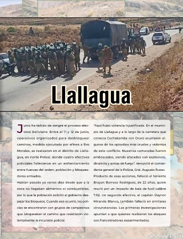 Jtoral boliviano. Entre el 11 y 12 de junio, pio de Llallagua y a lo largo de la carretera que