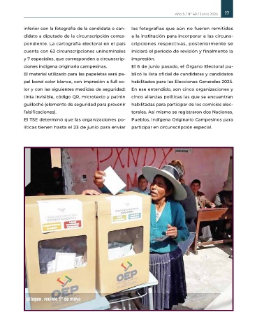 ciones indígena originario campesinas.             El 6 de junio pasado, el Órgano Electoral pu-