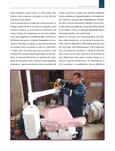 José Huarachi, quien junto a su hijo Dany, sos- metal, aluminio y melamina, enseres médicos
