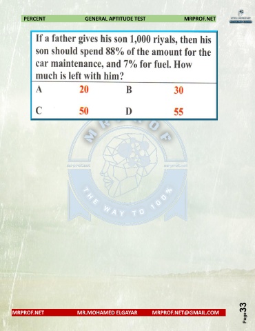 PERCENT GENERAL APTITUDE TEST MRPROF.NET Page33 MRPROF.NET MR.MOHAMED ELGAYAR MRPROF.NET@GMAIL.COM