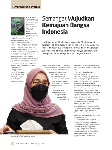 menjadi bangsa, sempurna. Hari Ulang tahun DPR RI dalam usianya ke 76 ini dimaknai