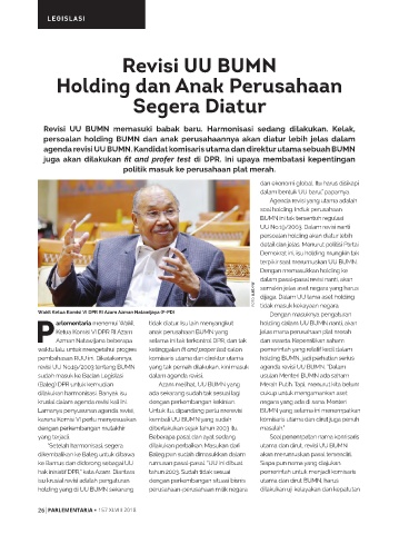 arlementaria menemui Wakil tidak diatur. Isu lain menyangkut holding dalam UU BUMN nanti, akan