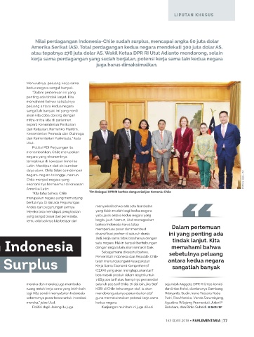 Nilai perdagangan Indonesia-Chile sudah surplus, mencapai angka 60 juta dolar