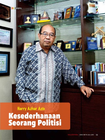 Harry Azhar Azis Kesederhanaan Seorang Politisi PARLEMENTARIA EDISI 108 TH. XLIII, 2013 55