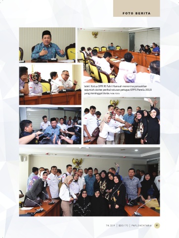 f O t O berita Wakil Ketua DPR RI Fahri Hamzah menerima perwakilan sejumlah dokter perihal ratusan petugas KPPS Pemilu 2019 yang meninggal dunia. Foto: azka TH. 2019 Edisi 173 parlEmEnTaria 31