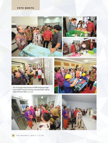 f O t O berita Tim Kunjungan Kerja Komisi IX DPR RI dipimpin Wakil Ketua Saleh Partaonan Daulay meninjau Balai latihan Kerja di Provinsi Bali. Foto: andri 32 parlEmEnTaria Edisi 173 TH. 2019