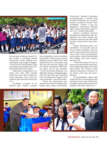 Mahyuddin menegaskan, kom- “Proses penentuan kelulusan 2011 sekolah meluluskan muridnya, ka-