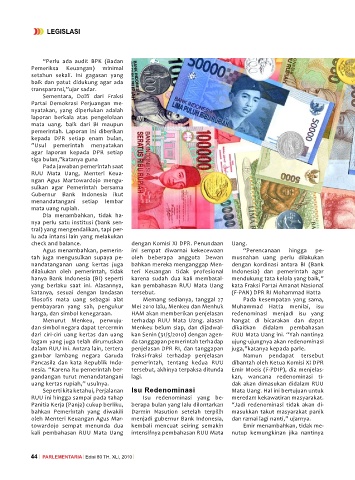 check and balance. dengan Komisi XI DPR. Penundaan Uang.