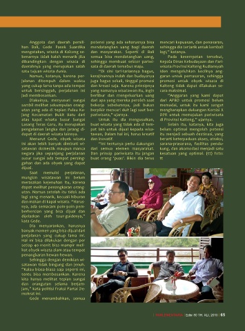 mengatakan, wisata di Kalteng se- dan masyarakat. Seperti di Bali lagi,” katanya.