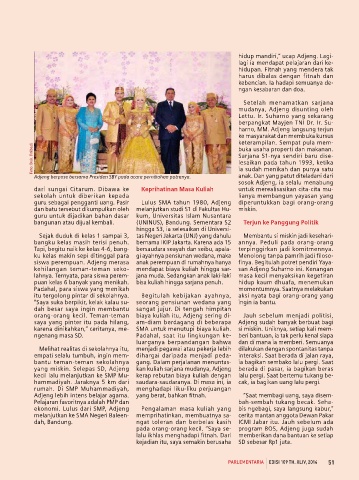 karena dinikahkan,” ceritanya, me SMA untuk menutupi biaya kuliah. si miskin. Uniknya, setiap kali mem