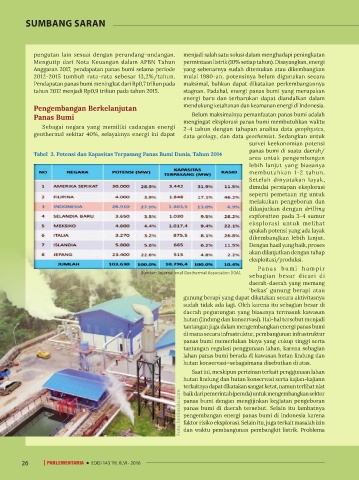 Tabel 3. Potensi dan Kapasitas Terpasang Panas Bumi Dunia, Tahun 2014