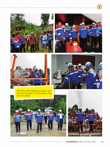 Wakil Ketua DPR RI Bidang Korinbang Agus Hermanto meninjau PT PGE Kamojang, Jawa Barat. Foto: Eko/iw PARLEMENTARIA l EDISI 143 TH. XLVI - 2016 l 43