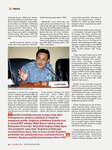 siswa di lembaga kursusnya terse- suk Ibnu. “Saya diminta mengurus menjadi anggota DPRD Ponorogo