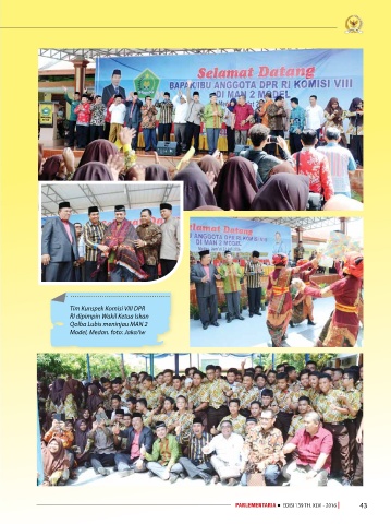 Tim Kunspek Komisi VIII DPR RI dipimpin Wakil Ketua Iskan Qolba Lubis meninjau MAN 2 Model, Medan. foto: Jaka/iw PARLEMENTARIA l EDISI 139 TH. XLVI - 2016 l 43