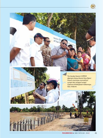 Tim Kunker Komisi V DPR RI dipimpin Ketua Komisi Fary Djemi Francis meninjau normalisasi sungai dan tanggul sungai Cipanas di Kabupaten Indramayu. foto: Azka/iw PARLEMENTARIA l EDISI 139 TH. XLVI - 2016 l 45