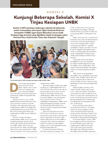melaksanakan UNBK mandiri 75 persen, Nasional Berbasis Komputer (UNBK) di Di Sulawesi Tengah, Komisi X DPR