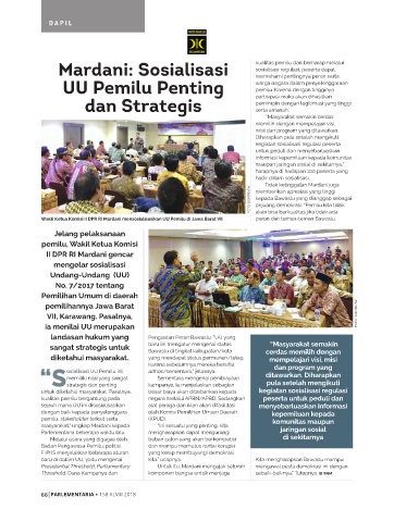 Wakil Ketua Komisi II DPR RI Mardani mensosialisasikan UU Pemilu di Jawa Barat VII akan bisa berkualitas jika tidak ada
