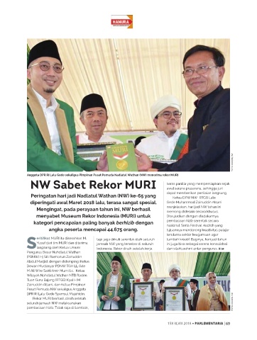 Anggota DPR RI Lalu Gede sekaligus Pimpinan Pusat Pemuda Nadlatul Wathan (NW) menerima rekor MURI