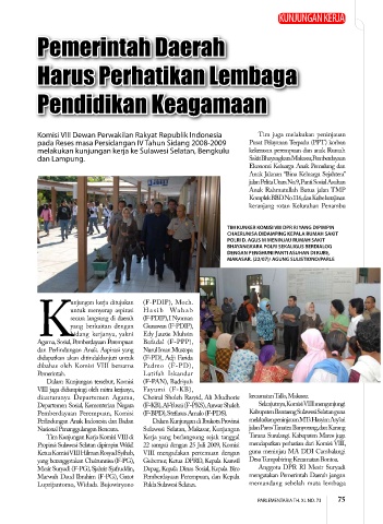 Propinsi Sulawesi Selatan dipimpin Wakil 22 sampai dengan 25 Juli 2009, Komisi mendapatkan perhatian dari Komisi VIII,