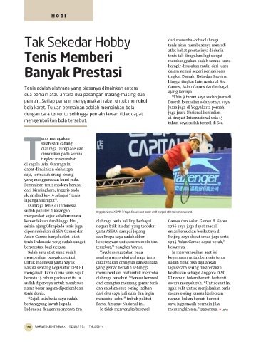 kemerdekaan dan hingga kini, olahraga tenis keliling berbagai Games dan Asian Games di Korea