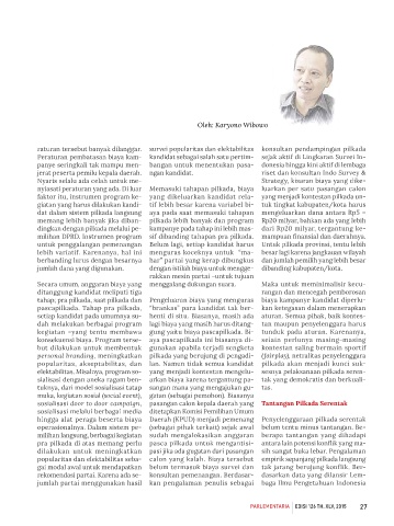 elektabilitas. Misalnya, program so yang menjadi kontestan mengelu sesnya pelaksanaan pilkada seren