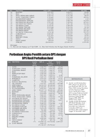 NO PROVINSI Jumlah DPS 1) Hasil Selisih