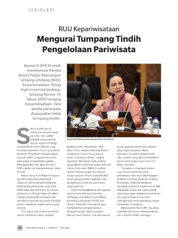 sebagai penyumbang Ketua Panja RUU Kepariwisataan Agustina Wilujeng Pramestuti.