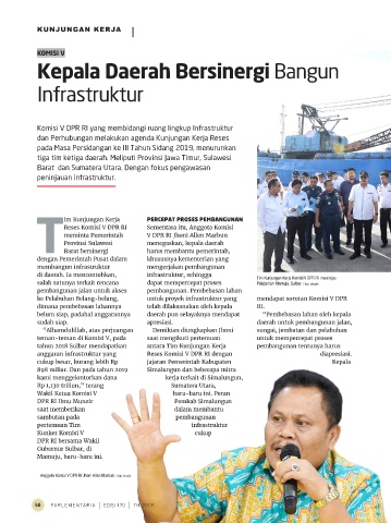 di daerah. Ia mencontohkan, infrastruktur, sehingga Tim Kunjungan Kerja Komisi V DPR RI meninjau