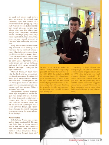 Menurut Rhoma, ini tidak hanya gota DPR dari Fraksi Partai Golkar ta- dirinya menjadi anggota dewan, saat