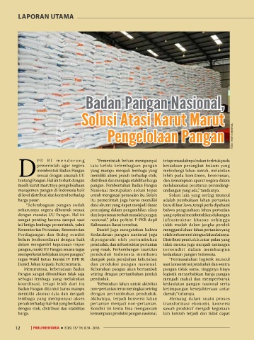 Daniel Johan kepada Parlementaria. dan produksi pangan nasional. saat konsentrasi penduduk dan sentra