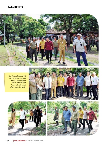 Foto BERITA Tim Kunspek Komisi VIII DPR RI dipimpin Wakil Ketua Daniel Johan, tinjau Balai Taman Nasional, Bali Barat. /foto: Iwan Armanias 40 l PARLEMENTARIA l EDISI 137 TH. XLVI - 2016