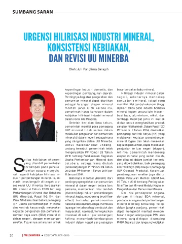 (UU Minerba), Pasal 102-104, dan mineral; kedua, mendorong (multiflyer dengan hilirisasi SDA mineral,